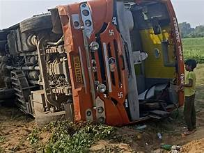 स्वतंत्रदेश ,लखनऊतीर्थयात्रियों से भरी एक बस सामने आई गाय को बचाने में अनियंत्रित होकर पलट गई। इस हादसे में लगभग 18 तीर्थयात्रियों को हल्की चोटें आईं, जिन्हें अस्पताल में भर्ती कराया गया। बस में कुल 52 यात्री सवार थे। सभी सुरक्षित बताए जा रहे हैं।
